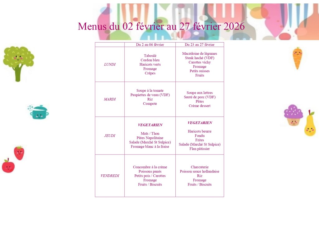 Menus février 2026
