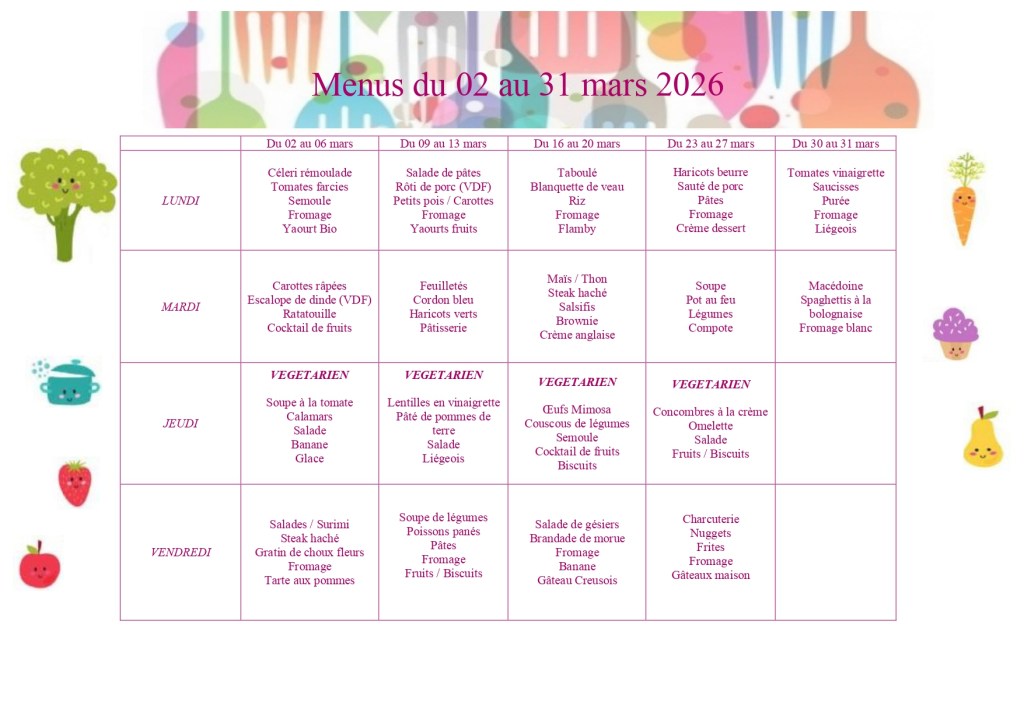 Menus mars 2026